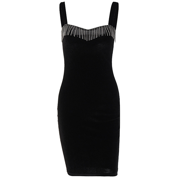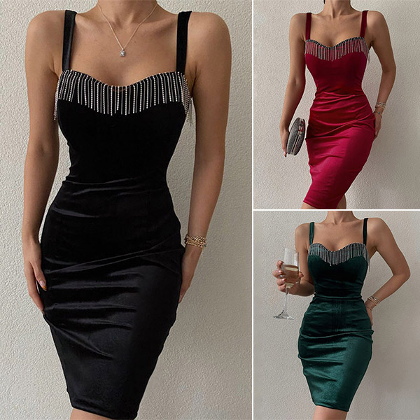 How about this dress? I like the bling-bling rhinestone tassel along the neckline. Thanks to the fit silhouette, your perfect curve can have a full display in this dress. Dress it up with your sexy heels for a stunning look!