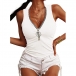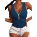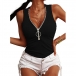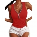 This tank top features a V-neckline with a zipper closure that will accentuate your cleavage, and a slim fit that will hug your curves in all the right places.