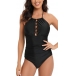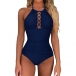 Sexy Solid Color/Printed Lace-up Halter Neck Backless One-piece Swimsuit/Monokini