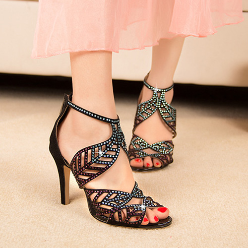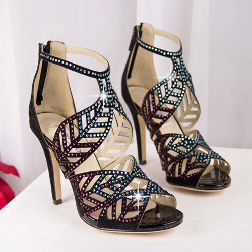 Sexy Sparkly Rhinestone Peep Toe High Heeled Sandals