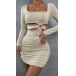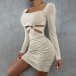 You are sure to be the focus when you dress yourself up with this dress. The hollow out high waist and square collar design make this piece look so sexy and seductive. Comes with a solid color,with long sleeve and a fit silhouette,this dress also can be your perfect weapon to flaunt off your perfect curve.