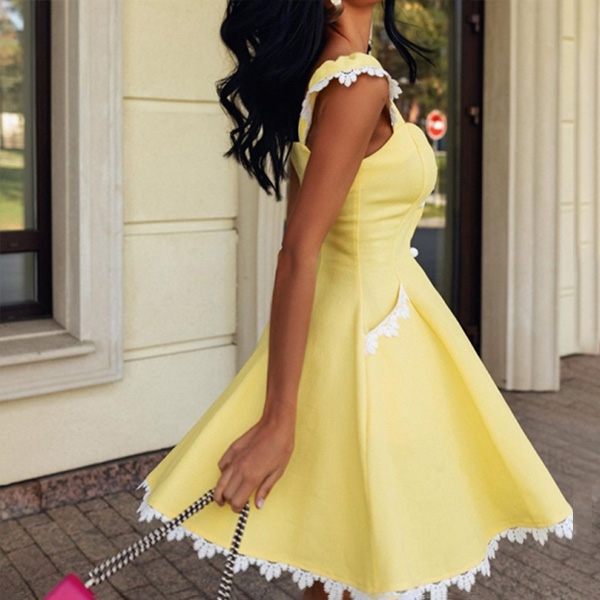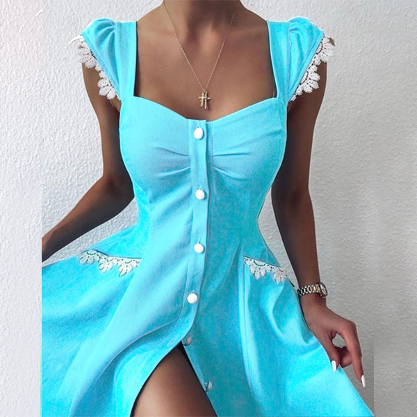 A last-minute party sparking your "I have nothing to wear" stress? Your worries will go out of the window with this dress. The square collar and lace spliced details will enhance your feminine appeal,while the single-breasted design will further enhance its charm. Dress it up with your sexy heels for a beautiful look.
