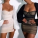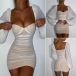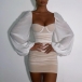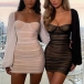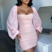 Sexy Square Collar Lantern Sleeve Slim Fit Gauze Dress