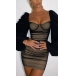 Seductive appeal can come easily once you slip into this alluring dress. The tight silhouette design can portray your slender figure,while the square collar and lantern sleeve design will make this piece look more attractive and stunning. For your fancy events,you can trust in this little stunner to draw more attention.