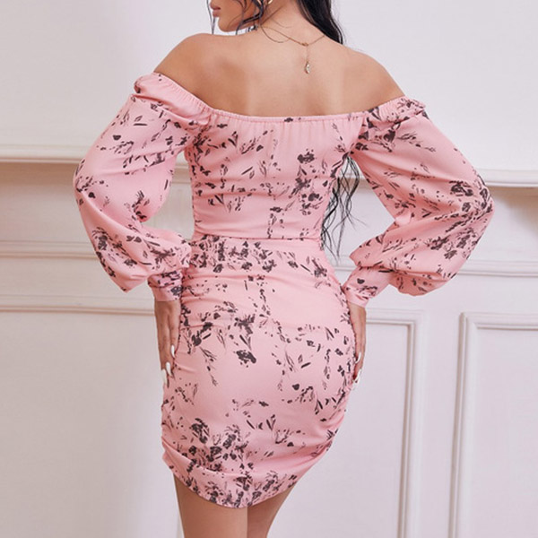 Sexy Square Collar Lantern Sleeve Slim Fit Printed Dress