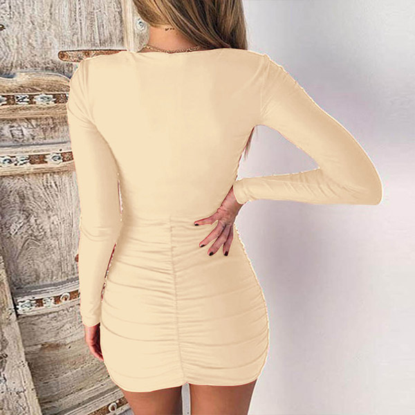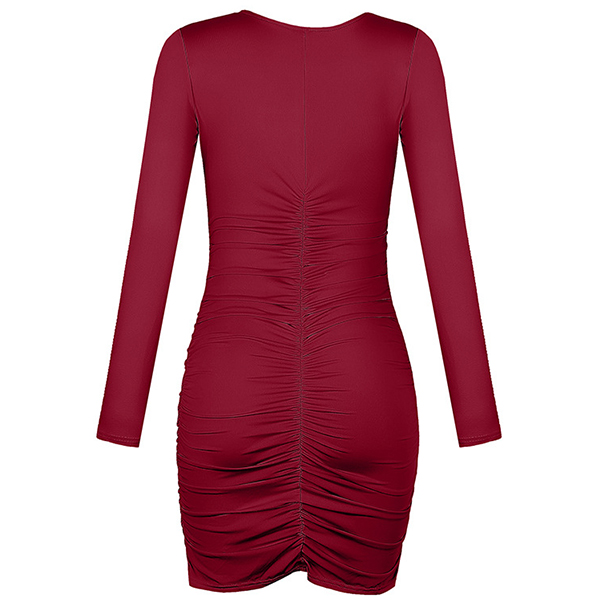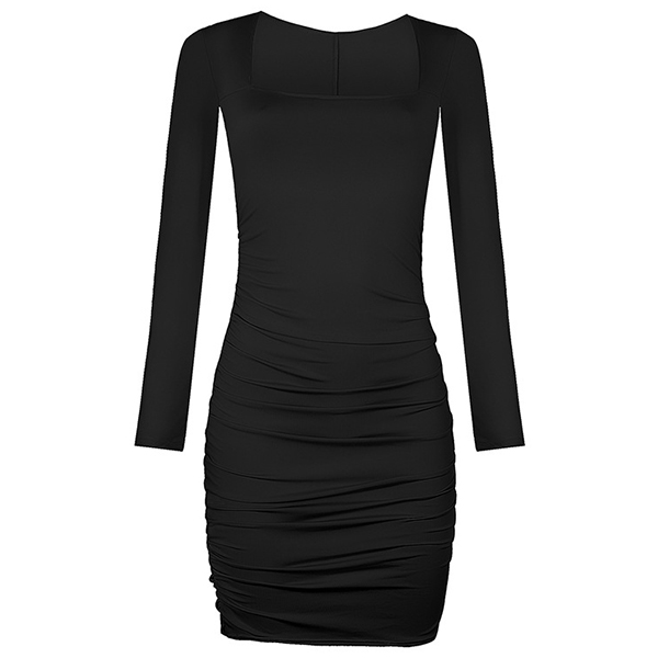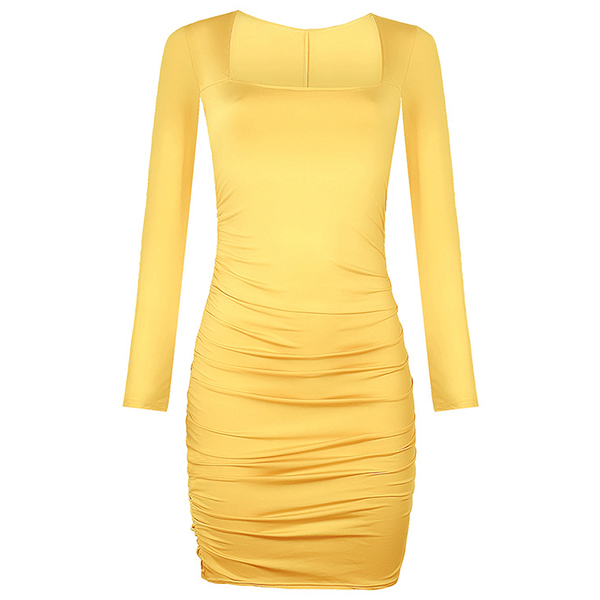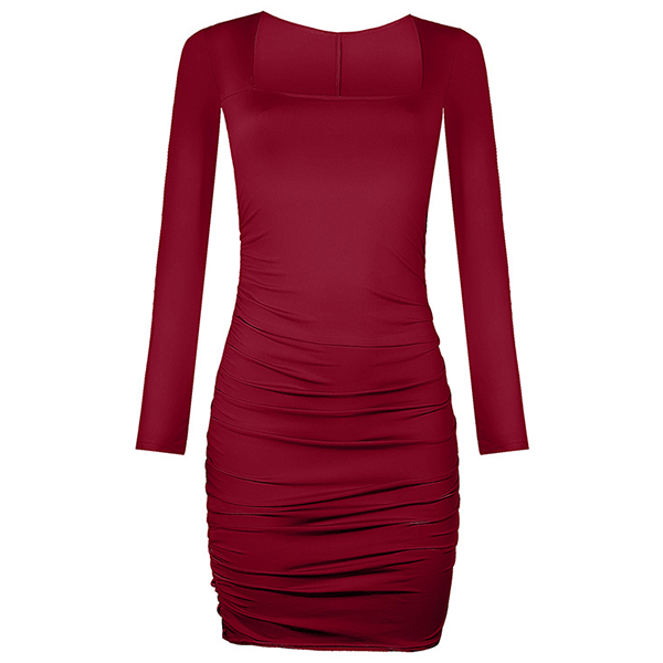When you don't know what to wear for your night dating or weekend gathering,you can just trust in this dress to express your beauty and charm. Solid color tone design makes it look simple,elegant and generous. Finished with long sleeve,square collar and a fit silhouette,this dress can portray your slender figure as well as boost your feminine appeal.