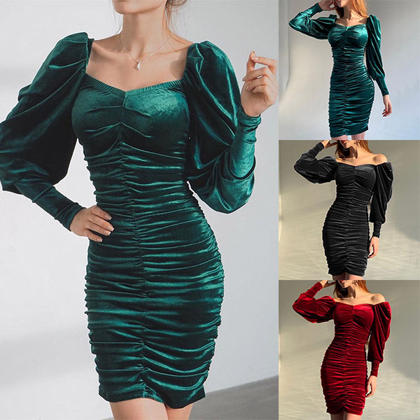 Hey,girls,you can trust in this dress to be your secret weapon to express your beauty and charm. Solid color style,finished with puff sleeve,square collar and a fit silhouette,this dress not only can showcase your slender figure,but also can boost your entire charm. Save this wonderful piece for your fancy events.