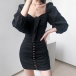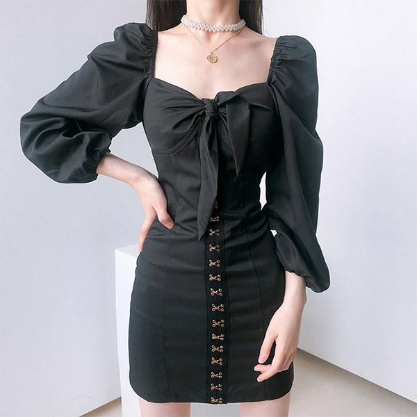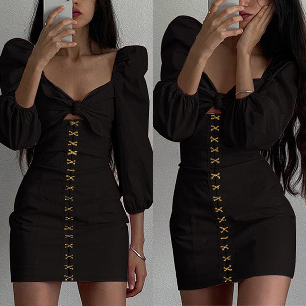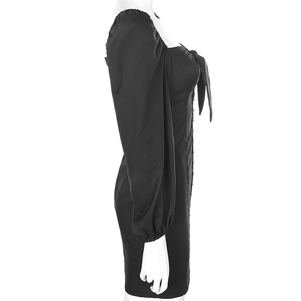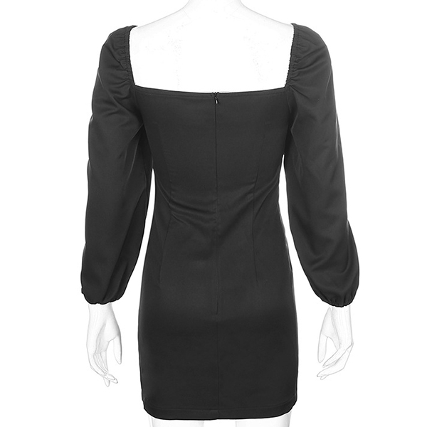 Thanks to the flattering black tone and fit silhouette,your slender figure can have a full display in this dress. Moreover,the square collar and puff sleeve design will make this piece look more attractive. So why not save this piece for your fancy events?