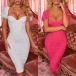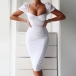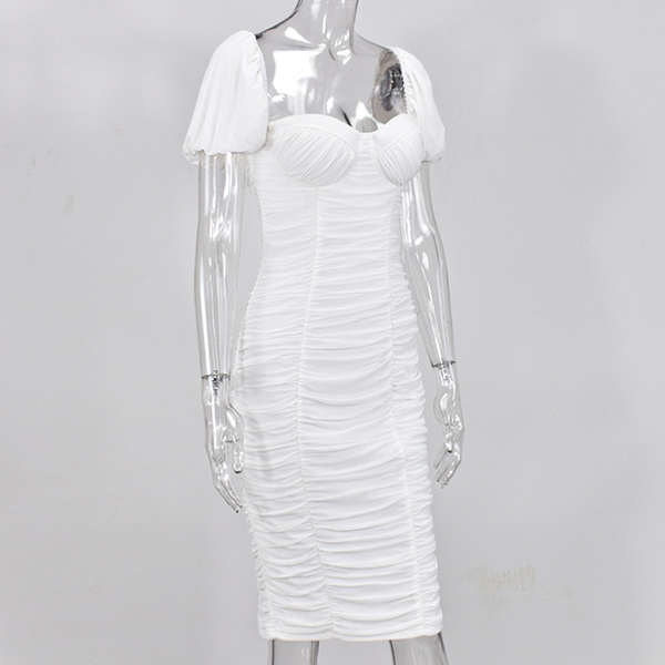 Sexy Square Collar Puff Sleeve Solid Color Slim Fit Dress