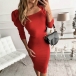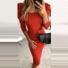 Sexy Square Collar Puff Sleeve Solid Color Slim Fit Dress