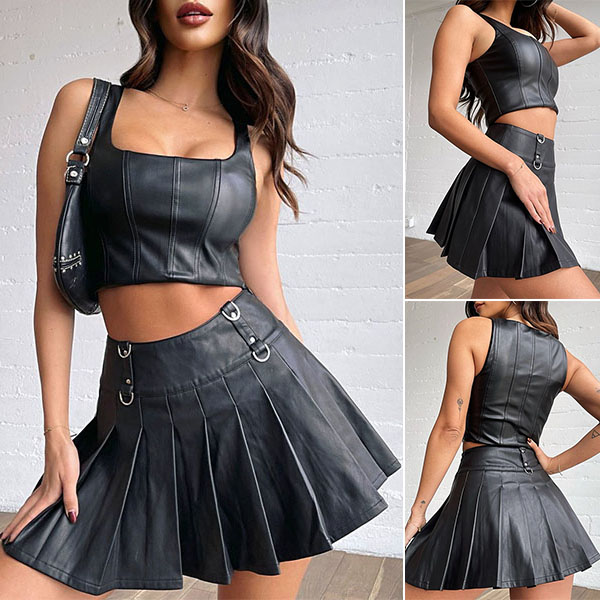 Wow,you look so sexy and flirty when you dress yourself up with this two-piece set. Solid color style,including a square collar sleeveless crop top and a high waist pleated skirt,this two-piece set not only can exude your perfect curve,but also can showcase your charming femininity. Just slip into this two-piece set to express your beauty and charm.