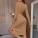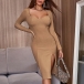 Sexy Square Collar Slit Hem Long Sleeve Solid Color Slim Fit Dress