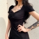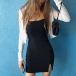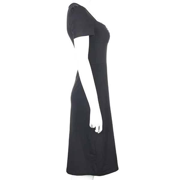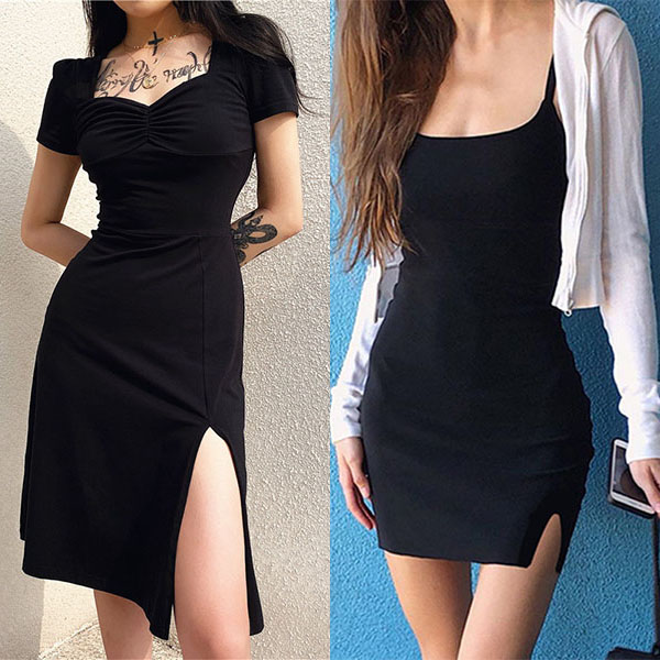 If you are looking for a proper dress for your night dating,then you can make your eyes focused on this delicate dress. The flattering black tone and fit silhouette design can better showcase your slender figure,while the square collar and slit hem design will enhance your feminine appeal. So y not save this dress for your fancy events?