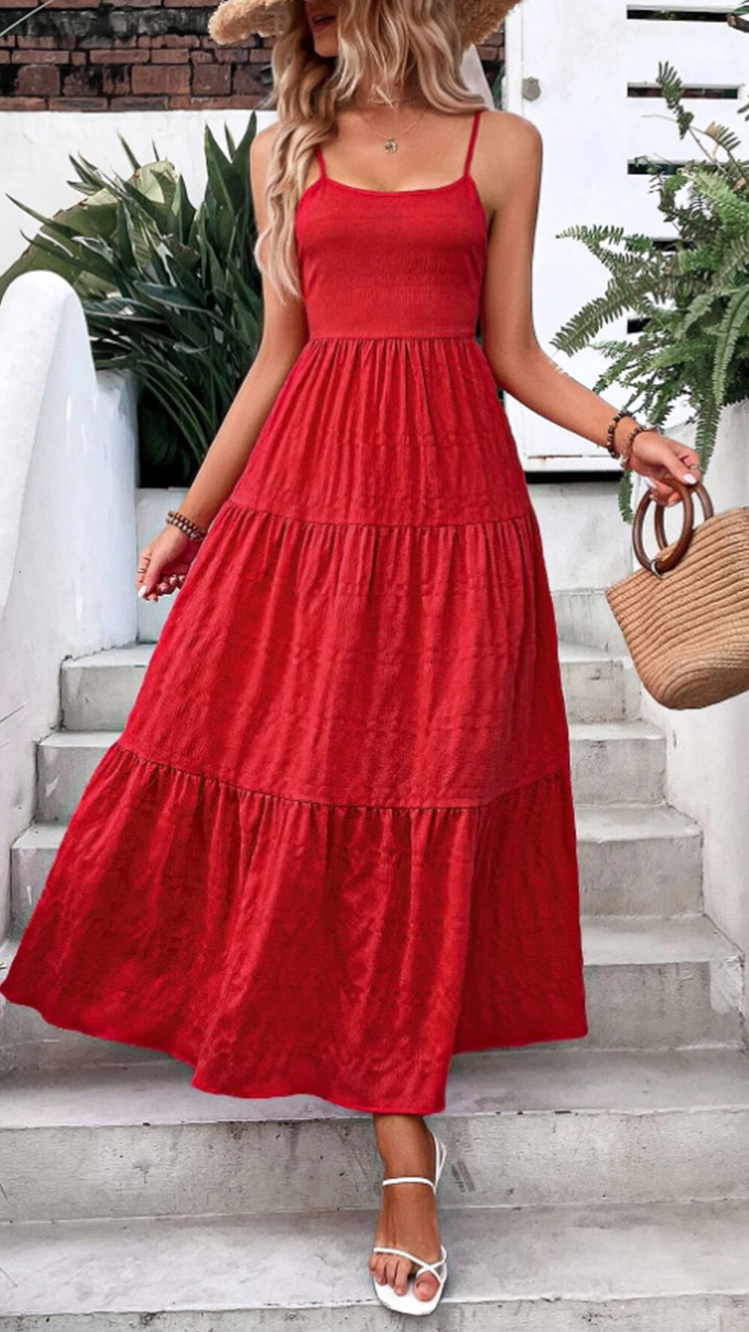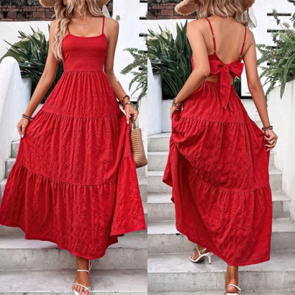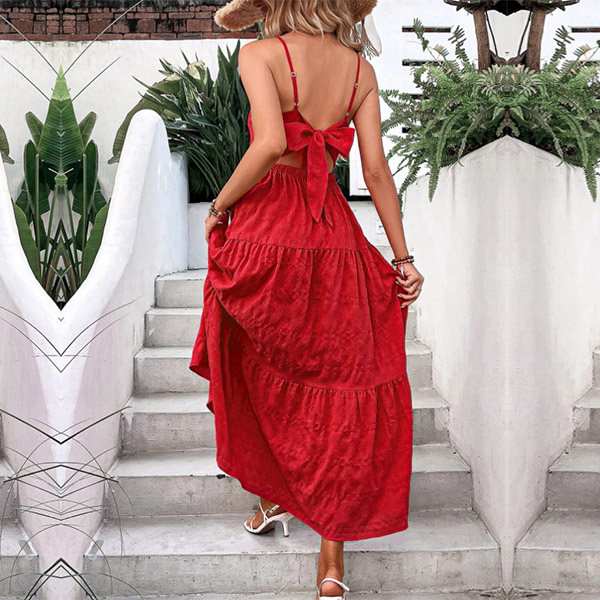 Look at this red dress! It features a sexy square neck, back-tie bowknot and tiered design. Wanna have a try?