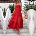 Sexy Square Neck Back Tie Bowknot Tiered Maxi Dress