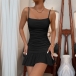 Sexy Square Neck Backless Ruched Ruffled Hemline Bodycon Slip Dress