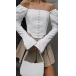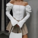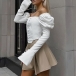 Sexy Square Neck Front Button Puff Long Sleeve White Crop Shirt