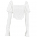 This white shirt features a square neck design, front button design, puff sleeves, and a cropped length for a trendy and fashion-forward look. Pairing with high-waisted bottoms for a stylish and flattering outfit.