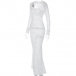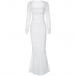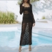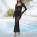 Sexy Square Neck Long Sleeve Semi-through Lace Bodycon Dress