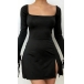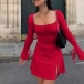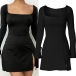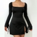 Sexy Square Neck Long Sleeve Side Slit Bodycon Dress