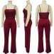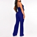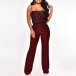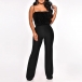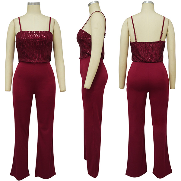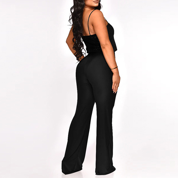 Sexy Square Neck Sequin Bodice Spliced Chiffon Straight-cut Jumpsuit