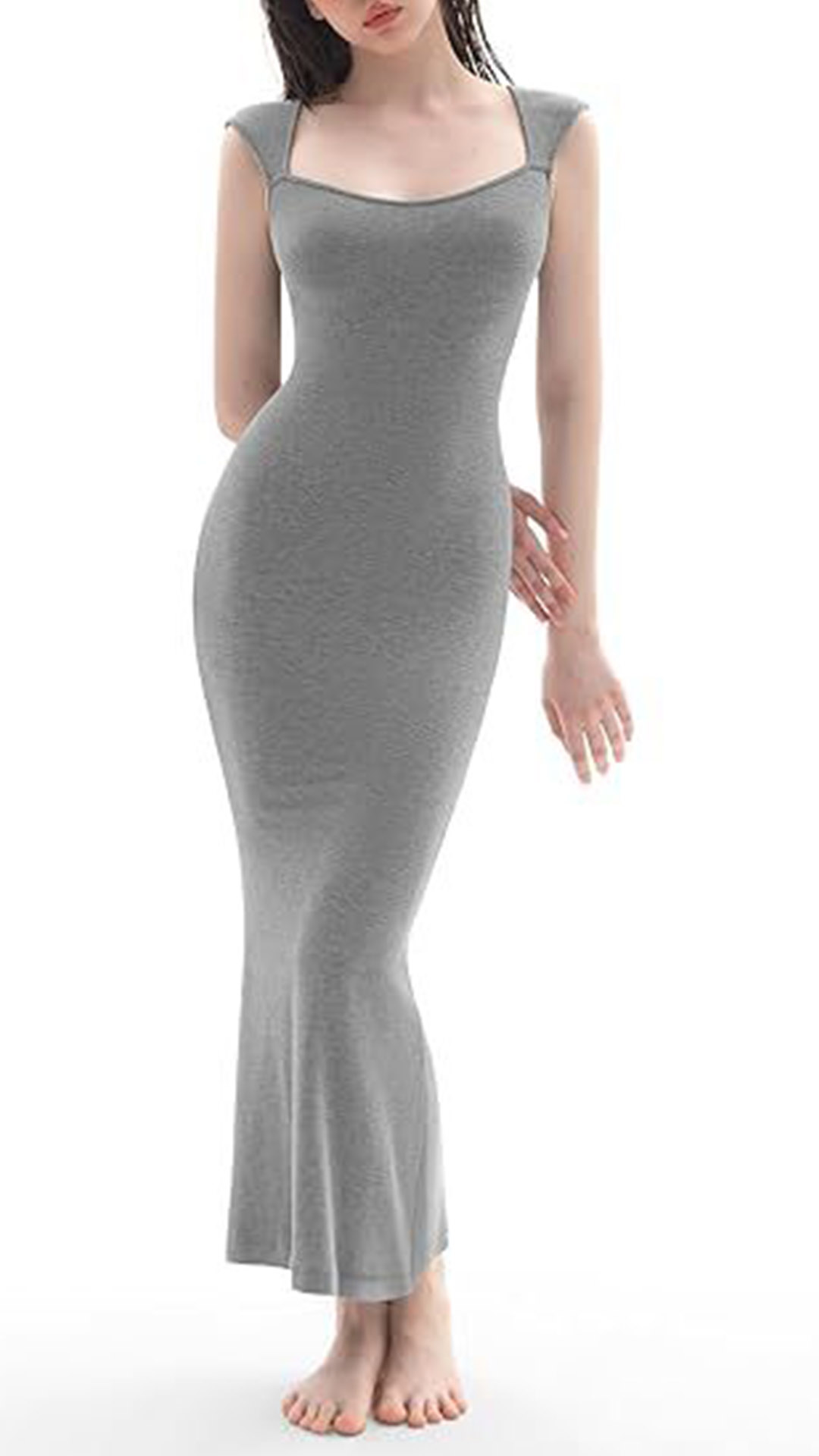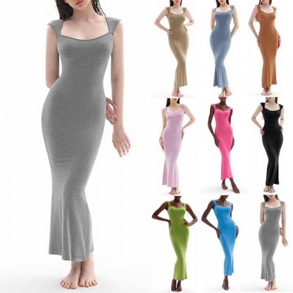 Sexy Square Neck Sleeveless Fishtail Hemline Bodycon Dress