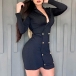Sexy Stand Collar Double-breasted Backless Tassle Bodycon Dress