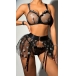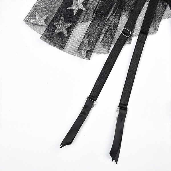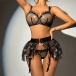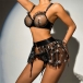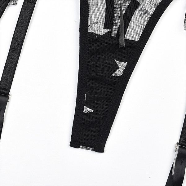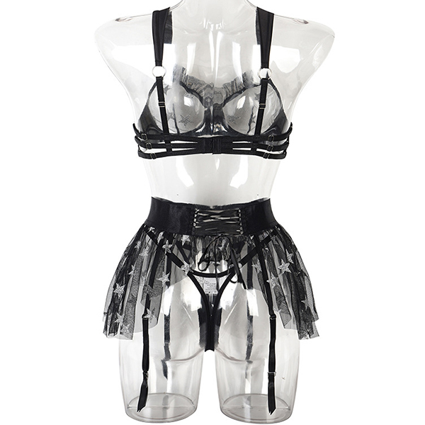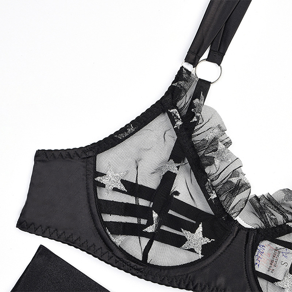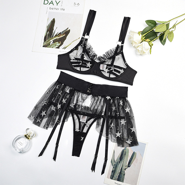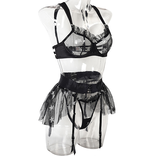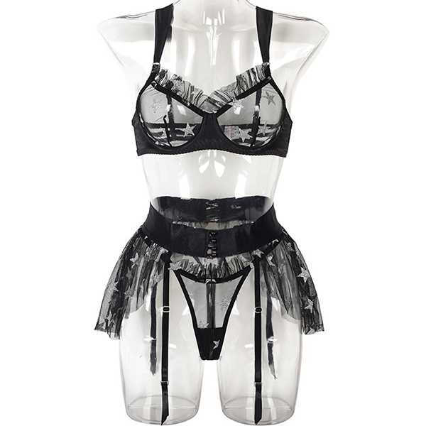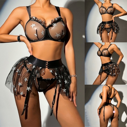 Sexy Star Pattern Semi-through Gauze Ruffle Three-piece Lingerie Set