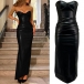 Sexy Strapless Back Lace-up Artificial Leather PU Bodycon Dress