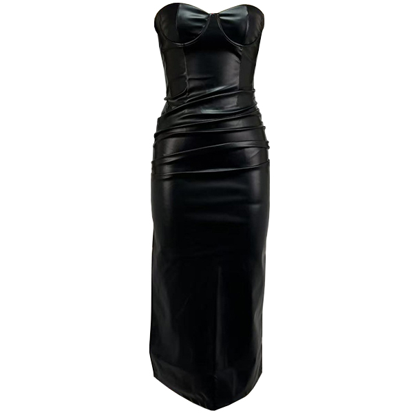 Make a bold and sexy statement with this sexy Bodycon Dress. This dress features a sleek and edgy artificial leather PU fabric that adds a touch of attitude to your outfit. The strapless design and back lace-up detailing create a flattering silhouette that accentuates your curves. Perfect for a night out, date night, or any special occasion where you want to stand out, this bodycon dress is sure to turn heads.