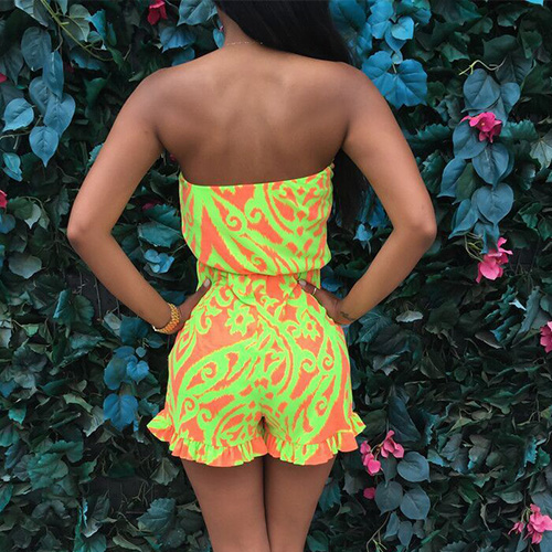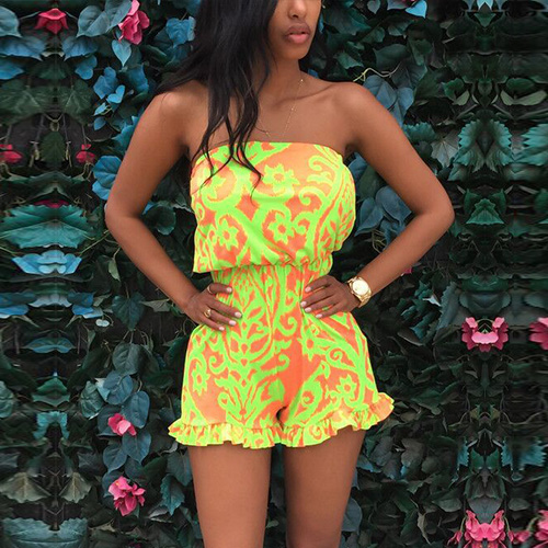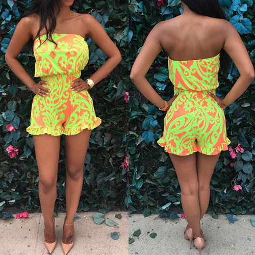 This strapless romper is equal parts sweet and stunning. It features chic print pattern,flouncing leg opening