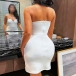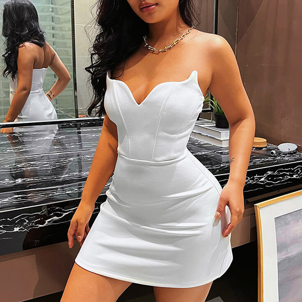 This party dress is perfect for any party or special event! The form-fitting dress is made of a polyester/spandex blend for a comfortable fit and feel, and features a strapless bodice for a flattering look.