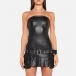 Sexy Strapless Bodycon Ruffle Artificial Leather PU Mini Dress with Belt