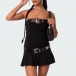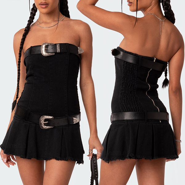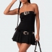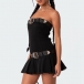 Sexy Strapless Bodycon Ruffle Mini Dress with Belt
