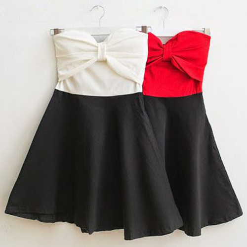 This party dress will be your perfect choice. Strapless style,chest part with bowknot design,