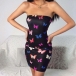Sexy Strapless Butterfly Printed Slim Fit Dress