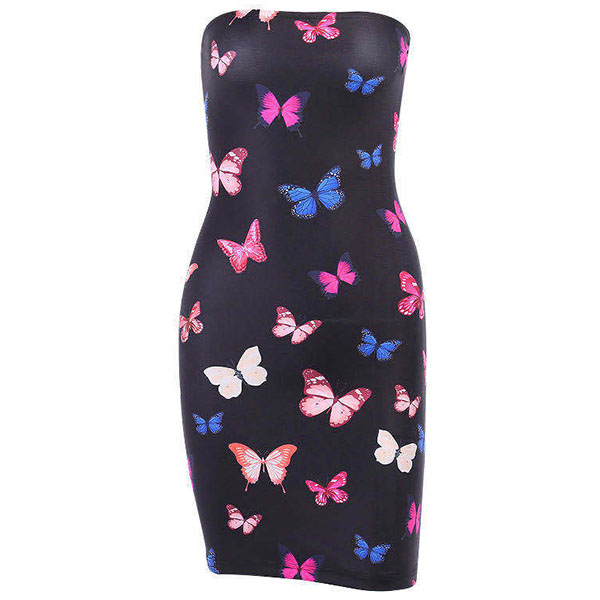 Every girl needs a sexy and feminine dress in her closet to take her to fancy events like wedding receptions and holiday parties, and this pretty number will do exactly that! Strapless style,designed with butterfly printed details and a fit silhouette,this dress is sure to exude your sexy and charming feminine appeal.