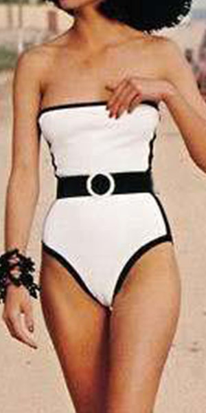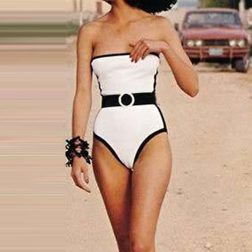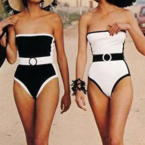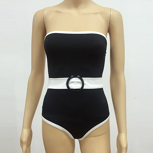 Strapless style,with contrast color design,sexy and charming. This one-piece swimsuit is