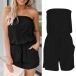 Sexy Strapless Drawstring Elastic Waist Solid Color Romper