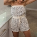Sexy Strapless Drawstring High Waist Leopard Printed Romper