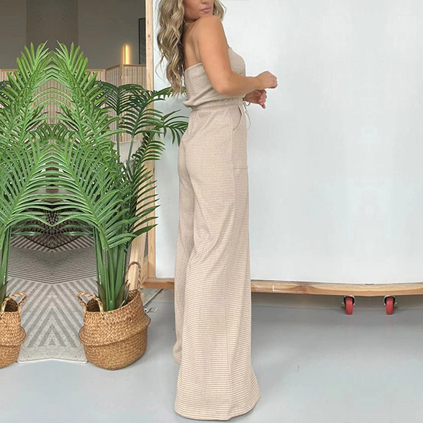 Sexy Strapless Drawstring Waist Wide-leg Jumpsuit