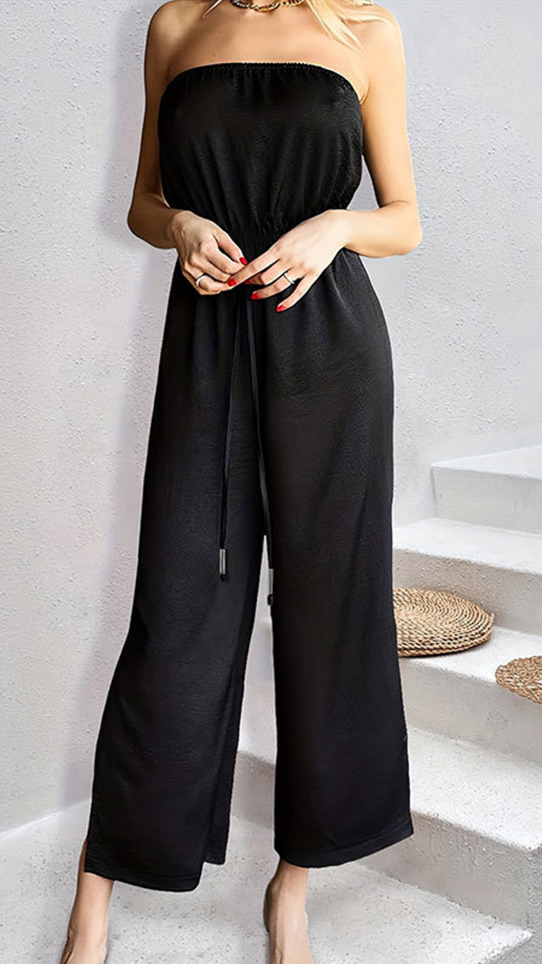 Sexy Strapless Elastic Waist Wide-leg Jumpsuit