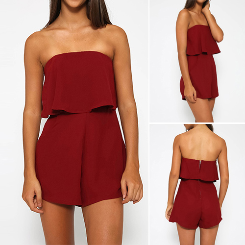 Solid color style,with strapless and flouncing design makes it look more sexy and charming. The piece