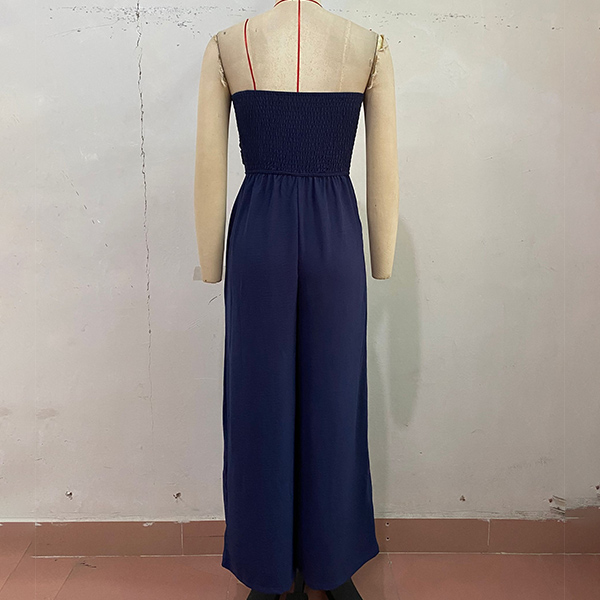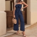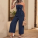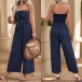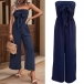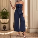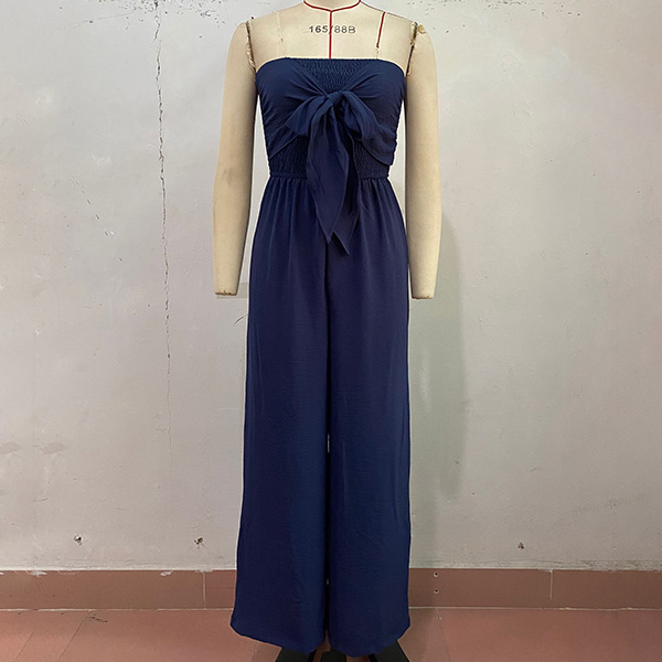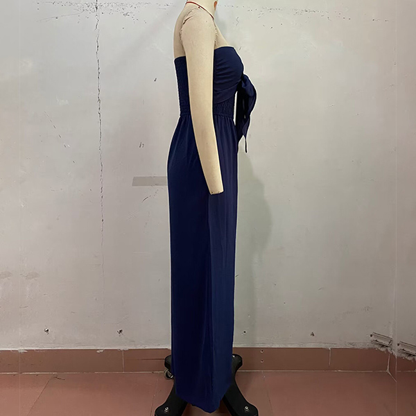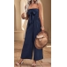 This is a bold and fashion-forward jumpsuit that combines a strapless neckline, a front bow detail, and a straight-leg silhouette for a sultry and sophisticated look.
