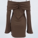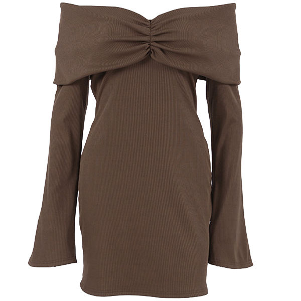 Sexy Strapless Front Ruched Long Sleeve Bodycon Dress