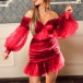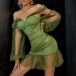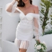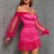 Sexy Strapless Gauze Spliced Lantern Ruffled Henline Beaded Party Dress