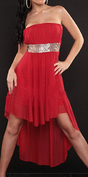 Strapless style,with high waist and high-low hem design,this dress is a perfect choice for