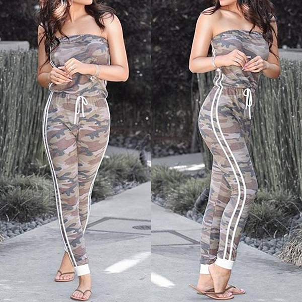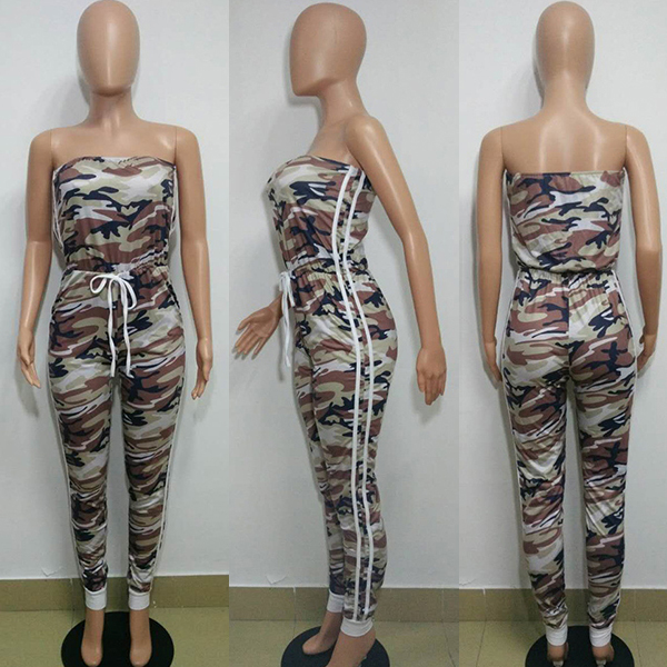 This jumpsuit is one of the best ways to showcase your alluring side and graceful curve. Strapless style,the camouflage