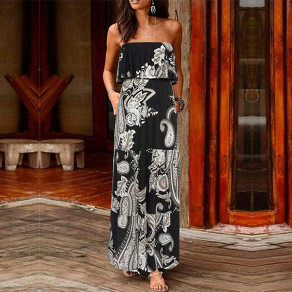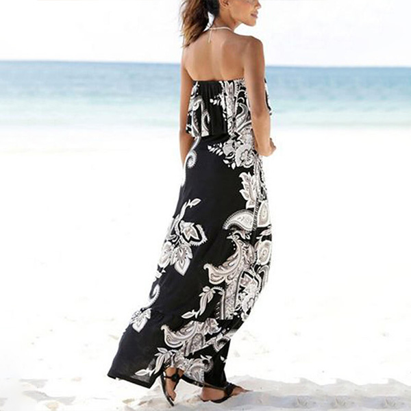 You can easily be a pleasant sight to draw more attention when you dress yourself up with this dress. Strapless style,with high waist and a maxi length,this dress can showcase your slender figure while it exudes your charming feminine appeal. Try to match with a bohemian style necklace to boost your charm.