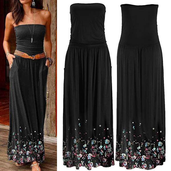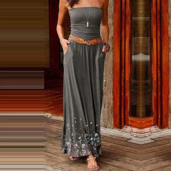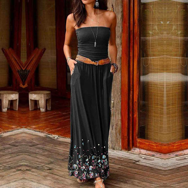 Looking for a relaxed and dreamy dress for your beach days and tropical getaways? Then make your eyes focused on this piece. Strapless style,with high waist and printed spliced hem design,this dress can make you look effortlessly charming and beautiful. If you wanna look more stunning,then you can add a sparkle necklace.